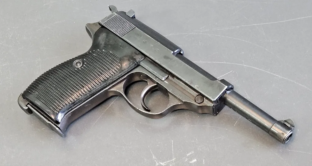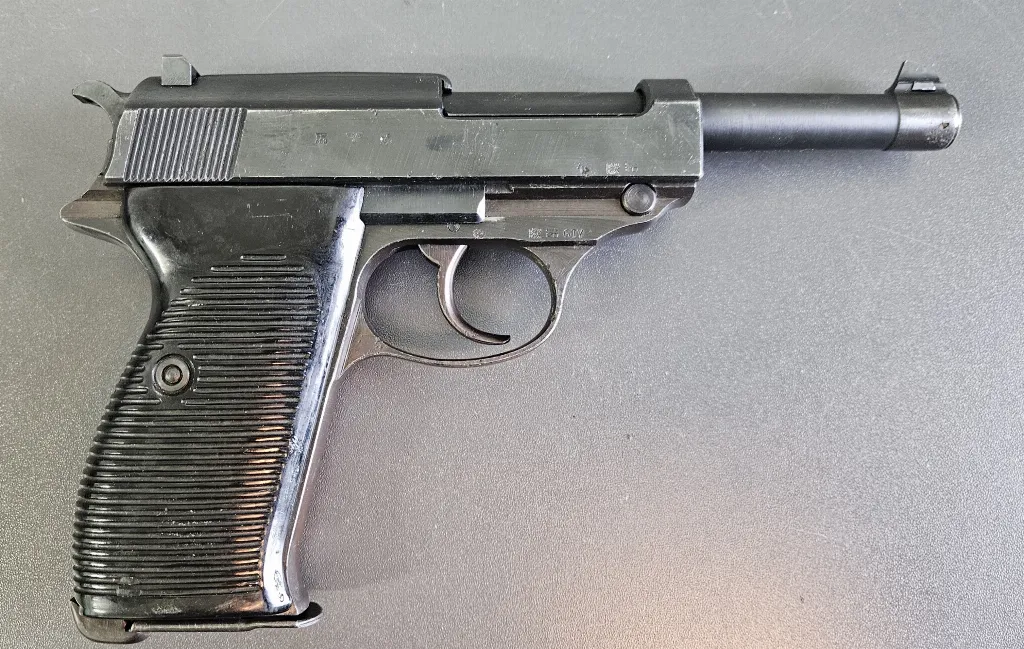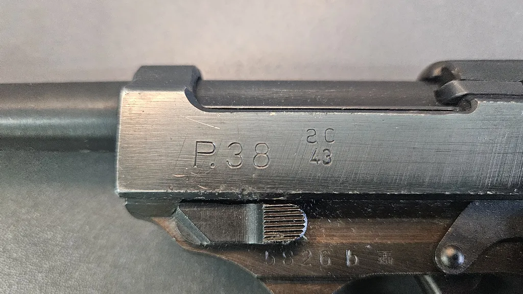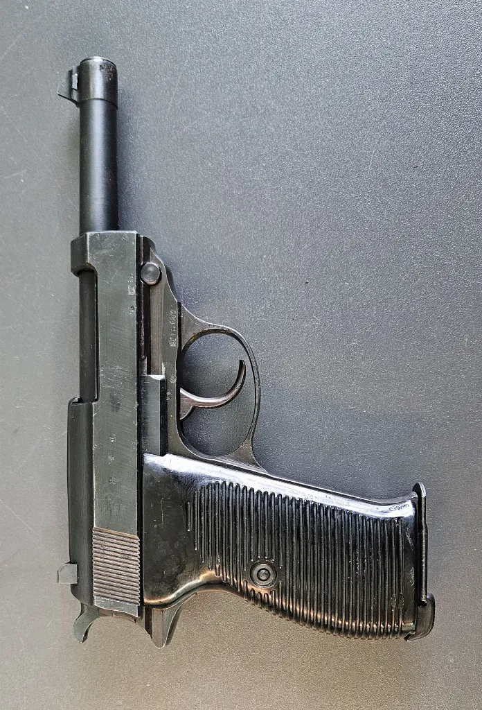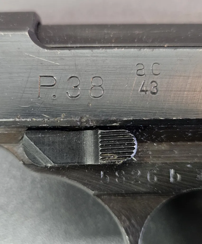 Pistolet P.38 produkcji zakładów Zella-Mehlis z roku 1943 kod ac43. Pistolet jeszcze przed modernizacją polegającą na pogubieniu szkieletu pod osią spustu. Broń w bardzo dobrym stanie, w oryginalnym wykończeniu nieremontowana i nieodnawiana, całkowicie zgodna numerycznie, w komplecie oryginalny wojenny magazynek. Pistolet posiada powojenne austriackie cechy odstrzału. Przewód lufy w stanie idealnym gwint ostry i jasny.
