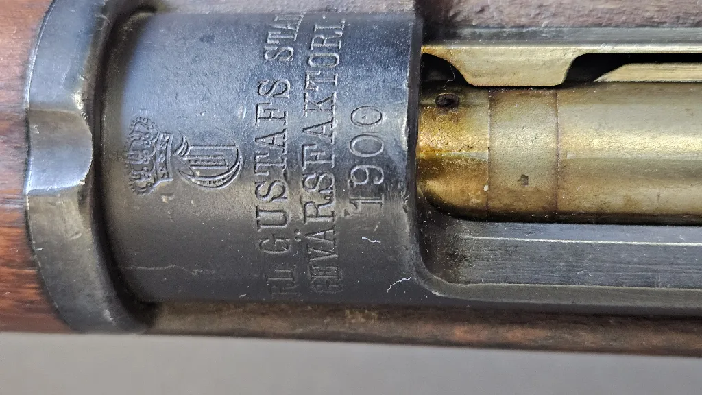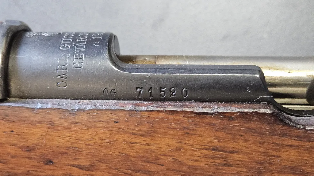 Szwedzki Mauser, wersja krótka, W latach 1938–1940 firma Carl Gustafs Stads Gevärsfaktori przerobiła 55 080 karabinów długich m/1896 na krótkie m/1938. Karabinek zgodny numerycznie i niemodyfikowany po wojnie. Przewód lufy w stanie fabrycznym.