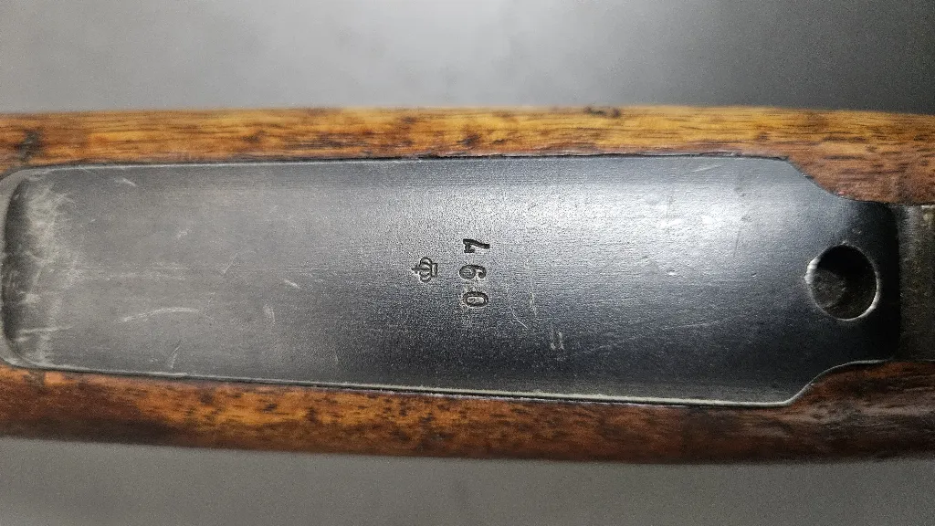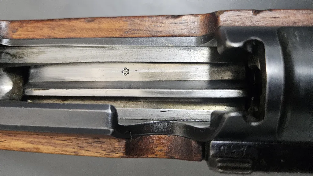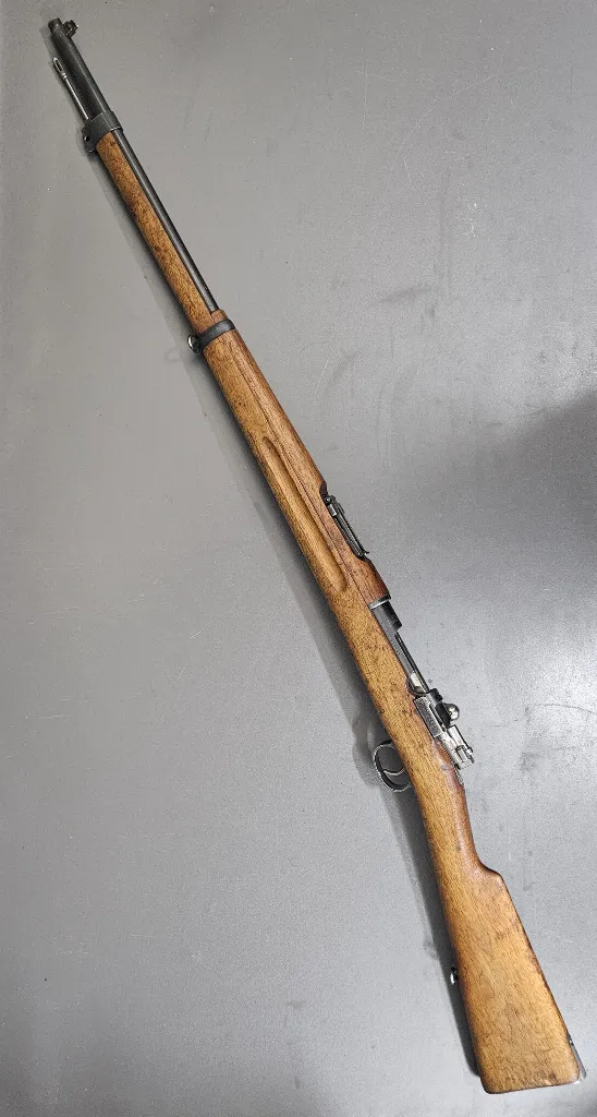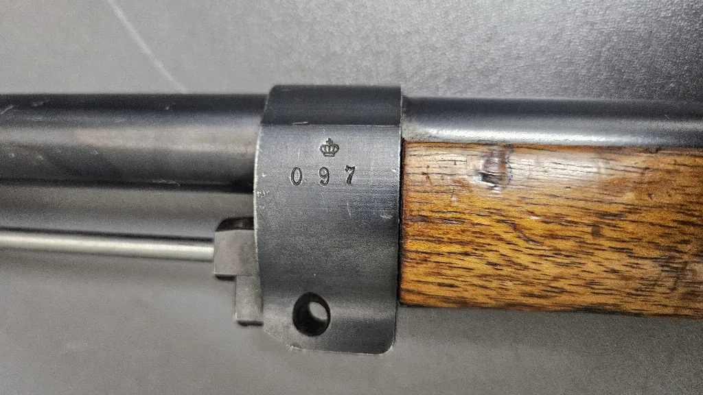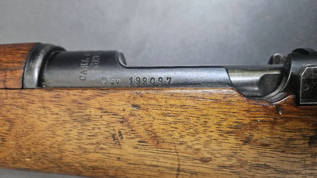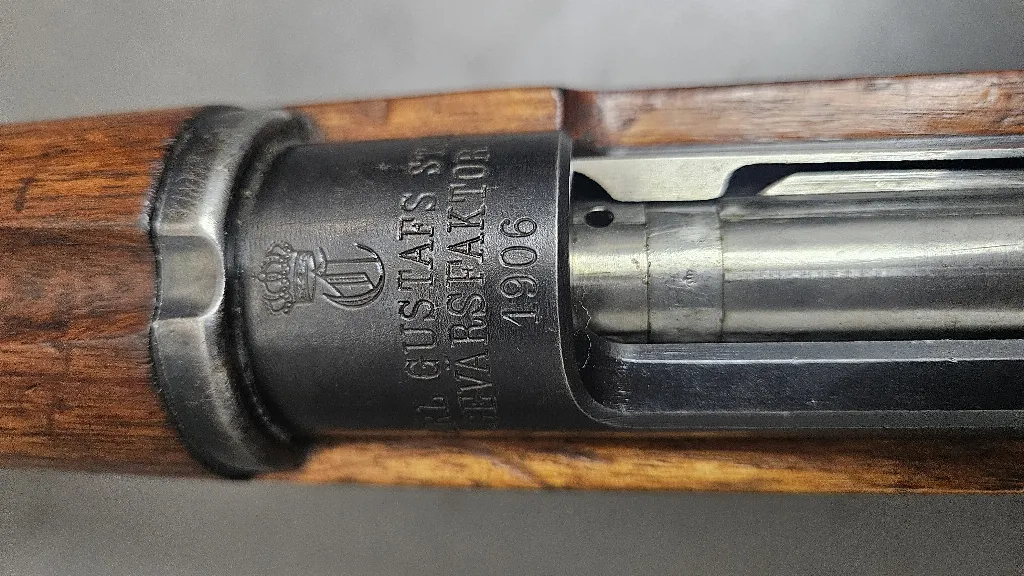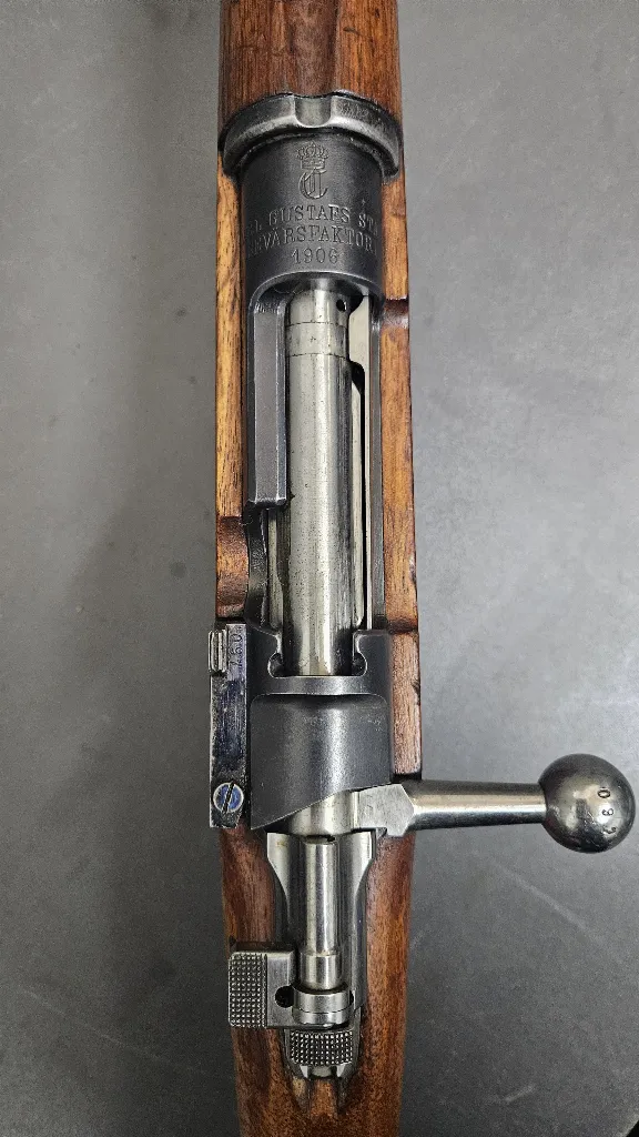 Szwedzki Mauser m/96 wyprodukowany w zakładach Carl Gustafs Stads Gevärsfaktori w 1906 roku. Karabin zgodny numerycznie i niemodyfikowany po wojnie. Przewód lufy w stanie fabrycznym.
