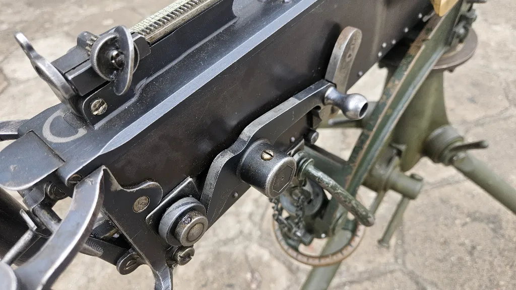 Karabin maszynowy Vickers, wyprodukowany w fabryce Vickers, Sons and Maxim w czerwcu 1918 roku. Broń w doskonałym stanie, kompletna w pełni sprawna mechanicznie, lufa lustro, podstawa z roku 1937.