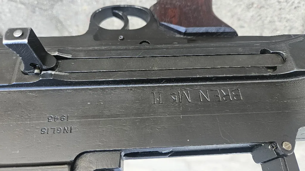Karabin maszynowy BREN Mk.II produkcji kandyjskiej wyprodukowany w 1943 roku z zakładach John Inglis & Co w Toronto (obecnie firma nazywa się Whirlpool). Karabin w niespotykanym stanie, wygląda jak nowy, niepoobijany i poobtłukiwany, jak większość dostępnych na rynku... a przede wszystkim zgodny, z oryginalną lufą mk II i kolbą mkII o tych samych numerach. Egzemplarz przetrwał w całości bez kanibalizacji części. całość w stanie fabrycznym.